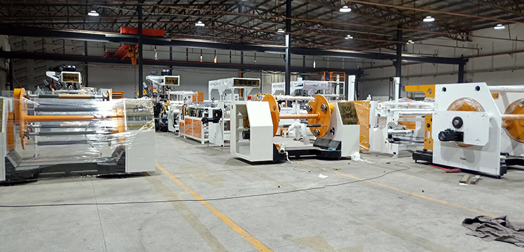 淋膜机又称挤出复合机、流延机、挤出流延机、流延复合机、涂膜机、涂塑机、涂布复合机(不准确,实际指热熔胶刮刀涂布机),是挤出成型机械的一种。具有自动化程度高、操作简便、生产速度高、涂层厚度均匀、粘合牢度高、卷取平整、环保无污染、节省人工及原料成本等优点。